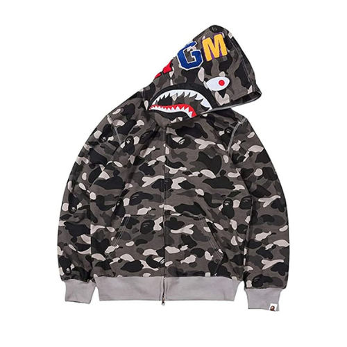 The BAPE 1st Camo Shark Replica Full Zip Hoodie is a stylish hoodie featuring the classic camouflage pattern with a full zip design that covers the face, showcasing the famous Shark graphic. It’s a comfortable and durable hoodie, perfect for everyday wear.