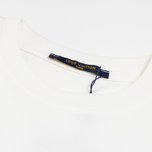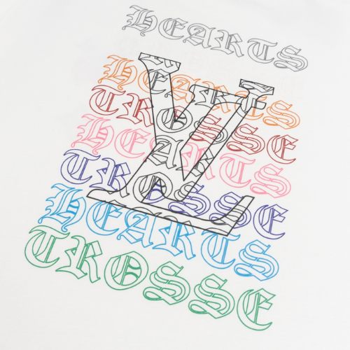 LV x Chrome Hearts Reps Sanskrit Letters T-Shirt in White made from custom 250g double yarn fabric, it boasts 100% genuine silk wash label and original mold certification. Precisely stitched with top-tier sleeve alignment, it faithfully replicates the authentic design. Available in eye-catching white, sizes range from XS to L.