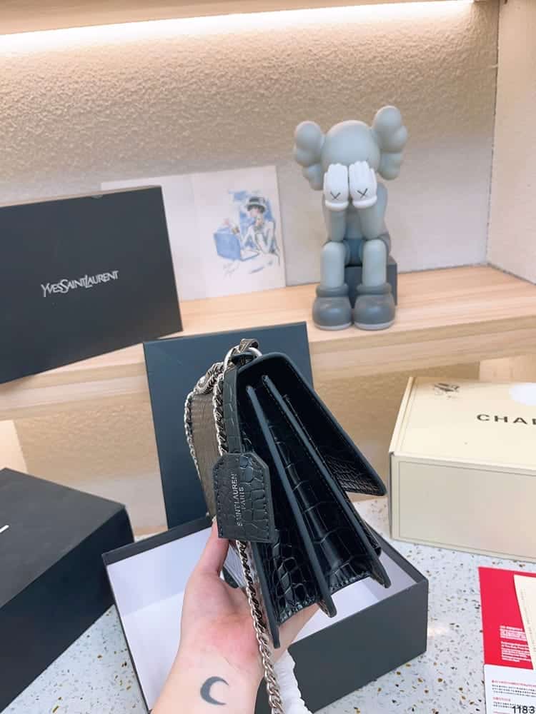 The Sunset Bag With Crocodile Embossing is a fusion of sophistication and daring style. Tailored for those who desire to make a bold fashion statement, this bag is more than an accessory; it’s a centerpiece. Its unique crocodile-embossed texture, combined with the warm hues of a sunset, evokes an aura of luxury and exclusivity. Whether you’re attending a high-profile event or enjoying an evening out, this bag is sure to turn heads and start conversations.