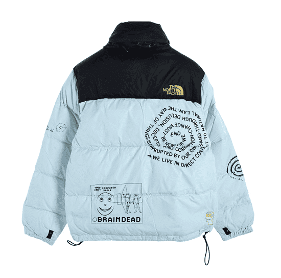 Introducing The North Face Replica x Brain Dead Blue Jacket, a fusion of avant-garde design and practical functionality. This jacket is a standout piece from the collaboration between The North Face and the innovative streetwear brand Brain Dead, known for its eclectic and bold aesthetics. The vibrant blue color and unique graphic details make this jacket not just a piece of outerwear but a bold fashion statement, perfect for those who dare to defy the ordinary.